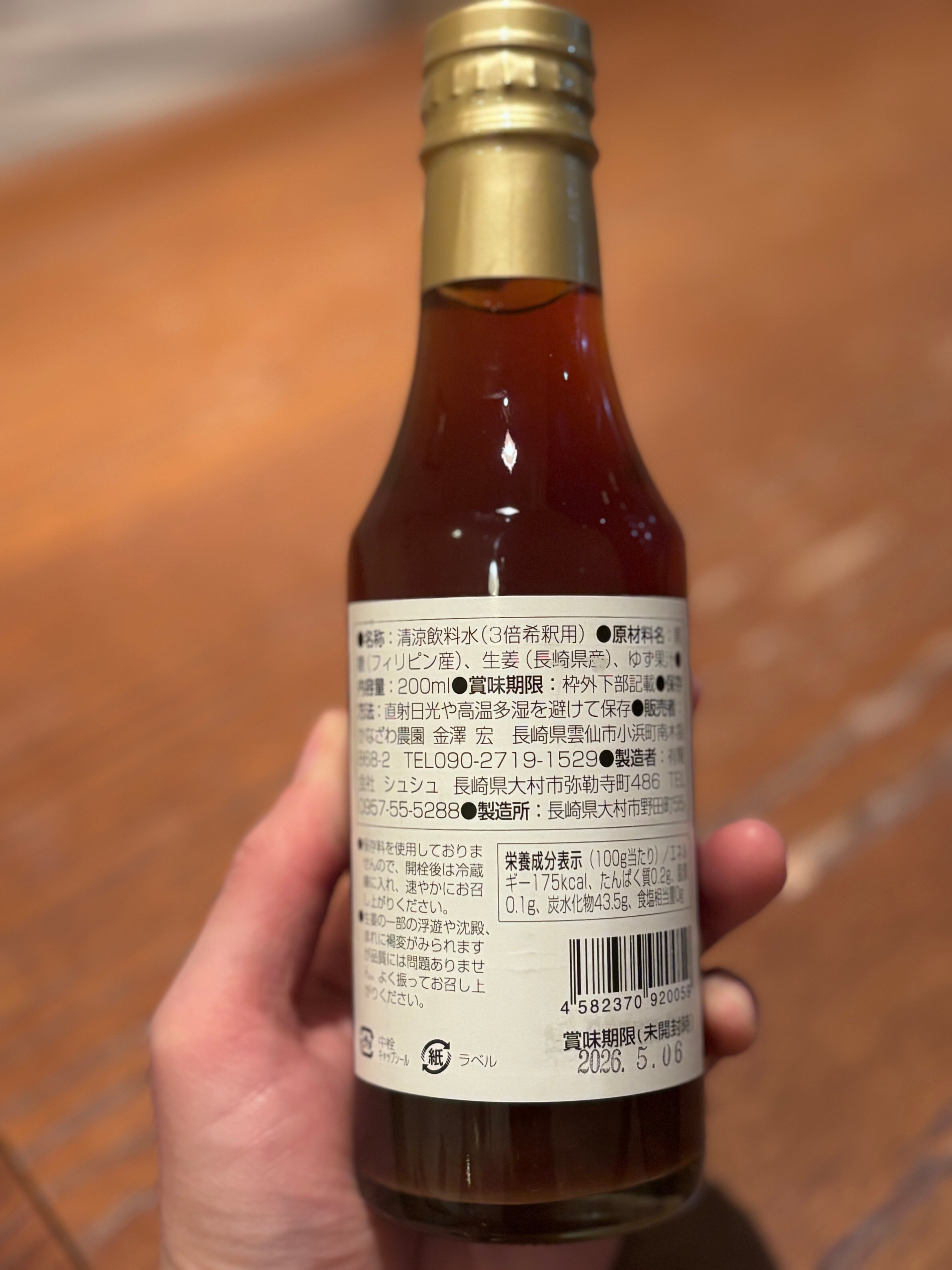 かなざわ農園さんの無農薬生姜シロップ1本